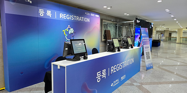 등록사무국 운영이 용이한 POS 형태로 셋팅, QR코드, 셀프체크인 및 현장 등록사무국 운영